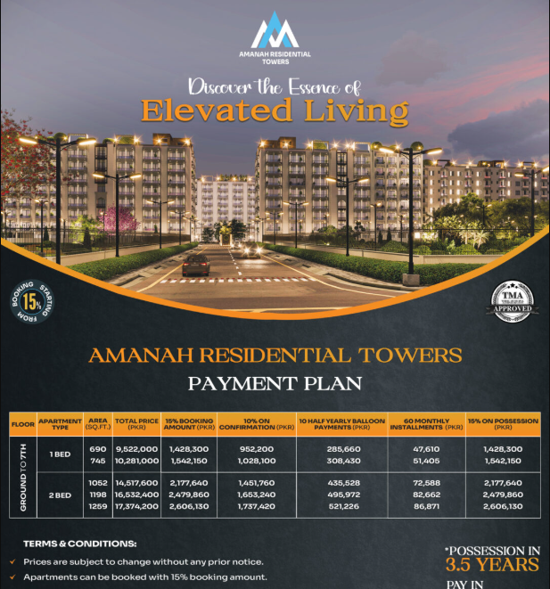Amanah Residential Towers is a luxurious residential project located in Lahore, Pakistan, offering a premium lifestyle to its residents. Developed by Amanah Estate Pvt Ltd, a renowned company with over 18 years of experience in the real estate industry, this project combines modern architecture with world-class amenities.